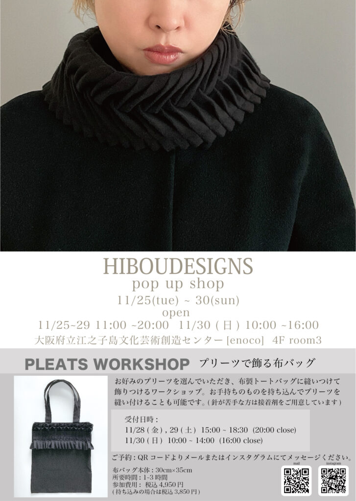 同時に布バッグにプリーツを装飾するワークショップも週末のみ開催します。